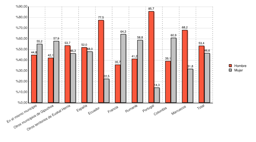 | Otros territorios de Euskal Herria | 44 | 53,7 | 38 | 46,3 | 82 | 100,0 |
