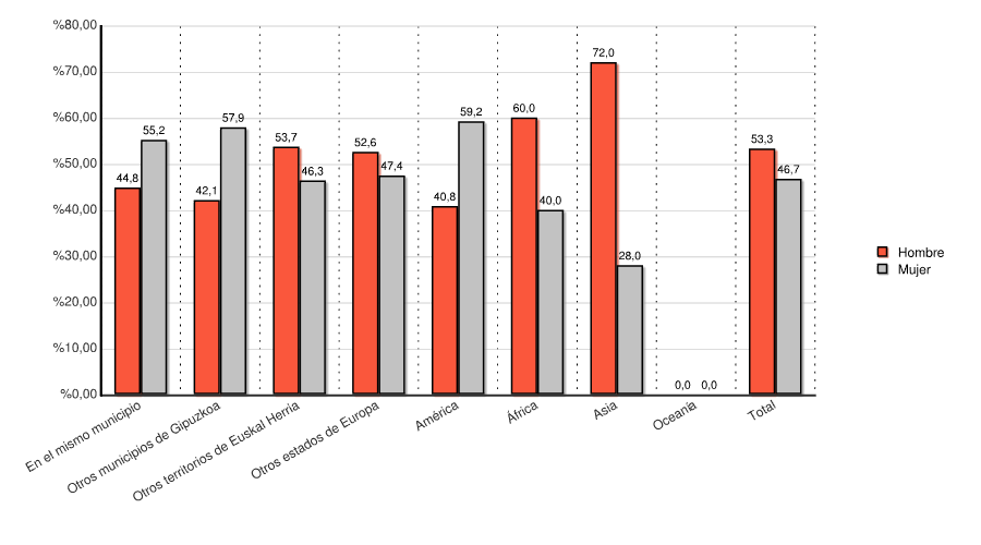 | Otros territorios de Euskal Herria | 44 | 53,7 | 38 | 46,3 | 82 | 100,0 |