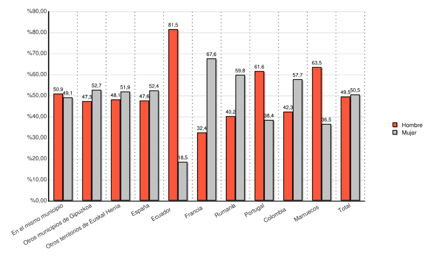 | Otros territorios de Euskal Herria | 1.454 | 48,1 | 1.567 | 51,9 | 3.021 | 100,0 |