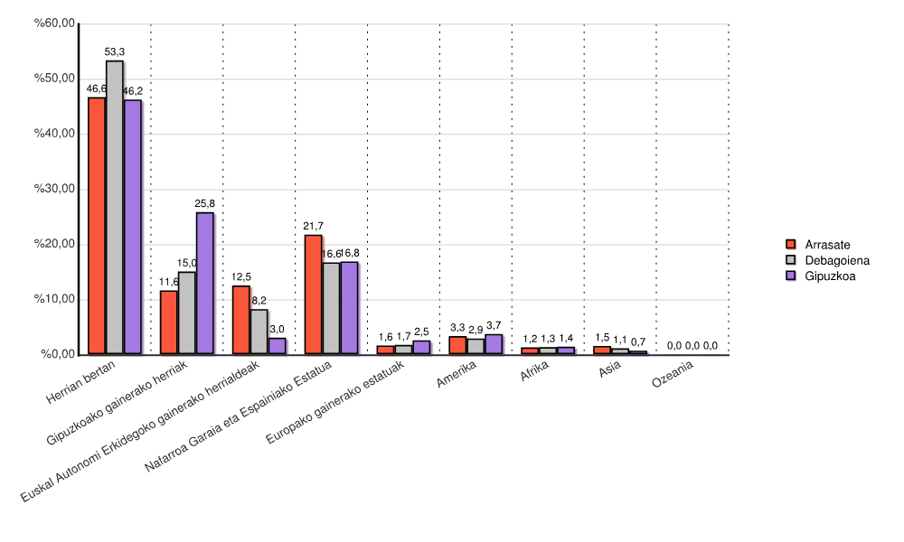 | Gipuzkoako gainerako herriak | 2.554 | 11,6 | 9.413 | 15,0 | 184.277 | 25,8 |