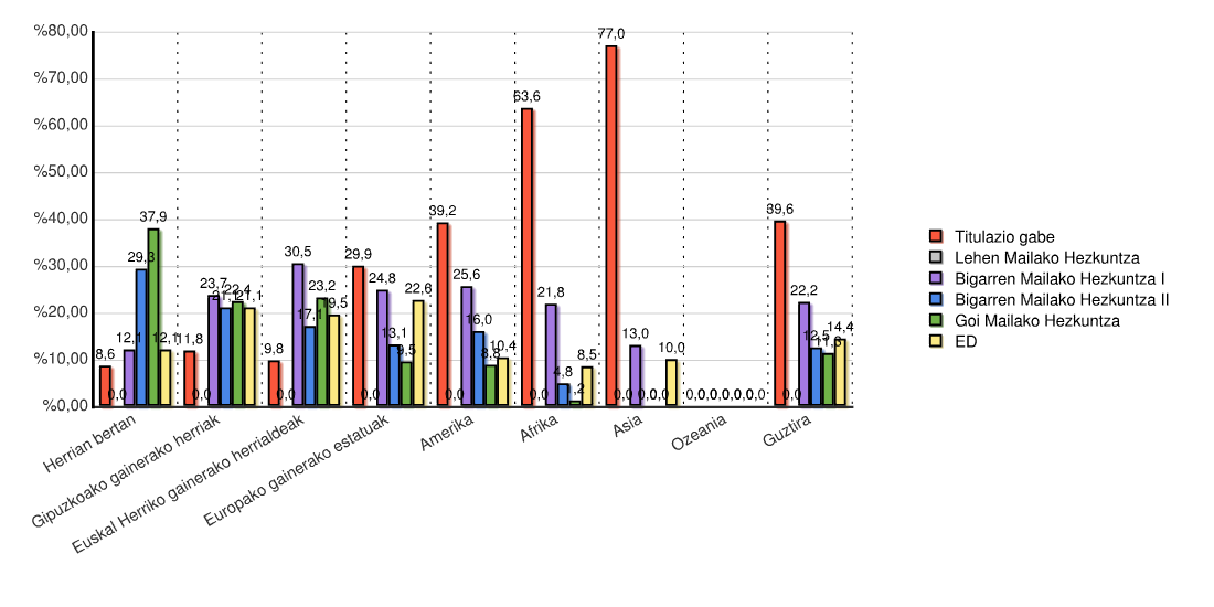 | Euskal Herriko gainerako herrialdeak | 8 | 9,8 | 0 | 0,0 | 25 | 30,5 | 14 | 17,1 | 19 | 23,2 | 16 | 19,5 | 82 | 100,0 |