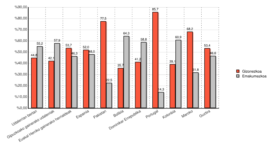 | Udalerrian bertan | 26 | 44,8 | 32 | 55,2 | 58 | 100,0 |
