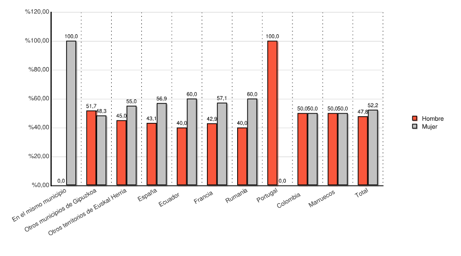 | Otros territorios de Euskal Herria | 9 | 45,0 | 11 | 55,0 | 20 | 100,0 |