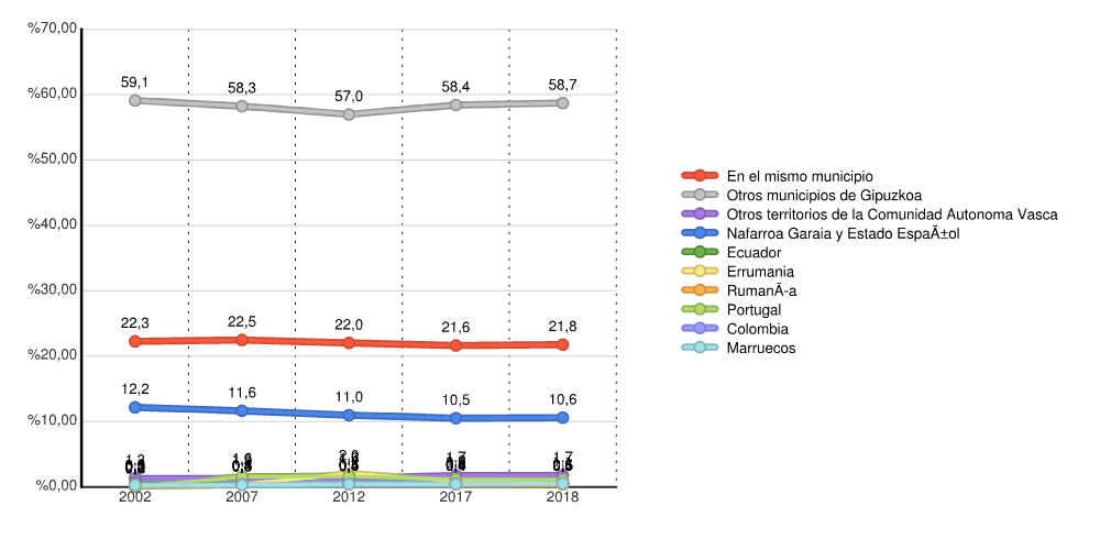 | Otros municipios de Gipuzkoa | 2.593 | 59,1 | 2.912 | 58,3 | 3.154 | 57,0 | 3.551 | 58,4 | 3.683 | 58,7 |