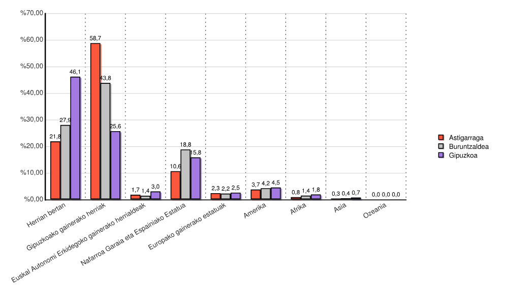 Barka, daturik ez 1.4.2.1 Taula: Jatorria Estatua herria eta ingurunearekin alderatuta, Astigarraga, 2019 hautaketarako. Aldatu mesedez datu aukera.