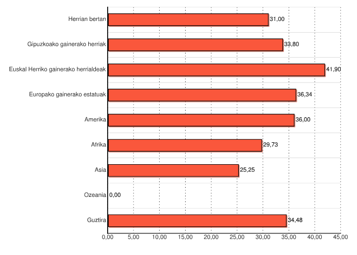| Euskal Herriko gainerako herrialdeak | 189 | 3,3 |
