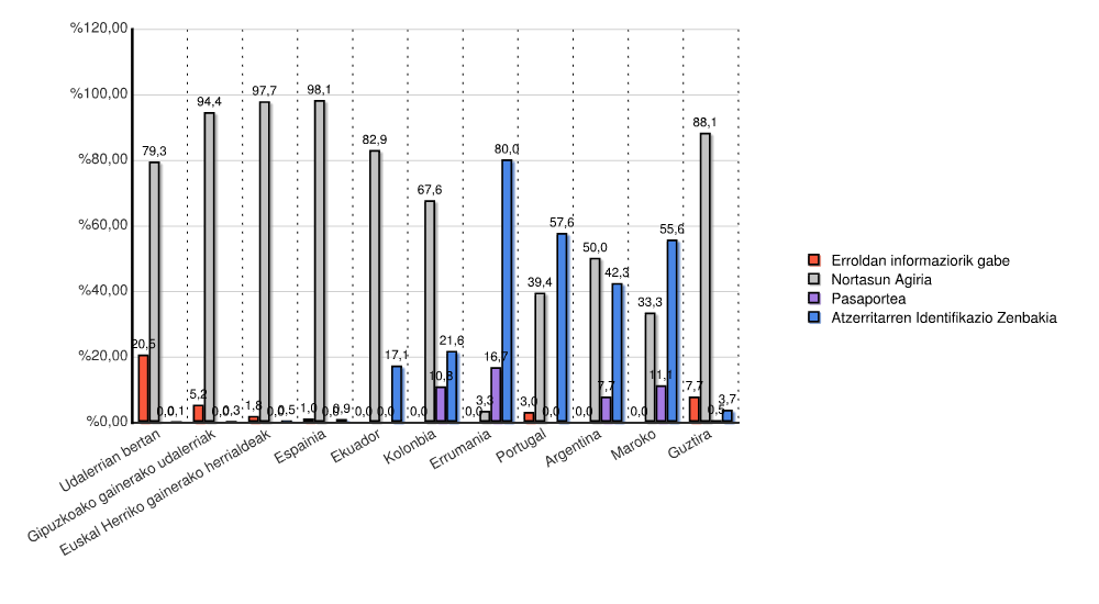| Estatua | Erroldan informaziorik gabe | Nortasun Agiria | Pasaportea | Atzerritarren Identifikazio Zenbakia | Guztira | |||||