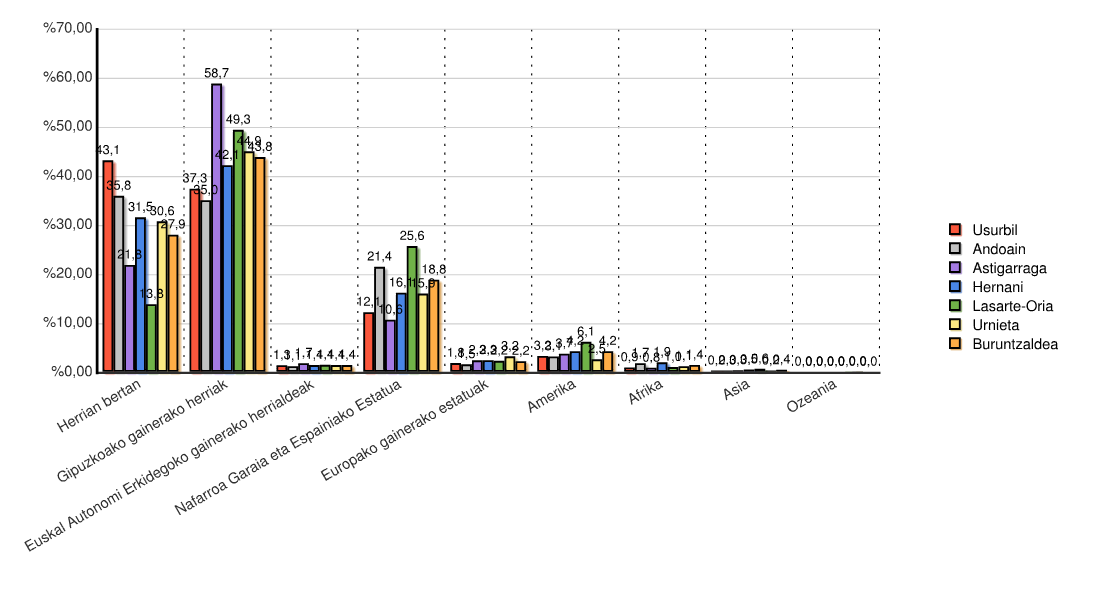 Jatorri aniztasuna 2019 / Jaiolekua ingurunearekin alderatuta / Kontinenteen arabera / Eskualdeko herriak