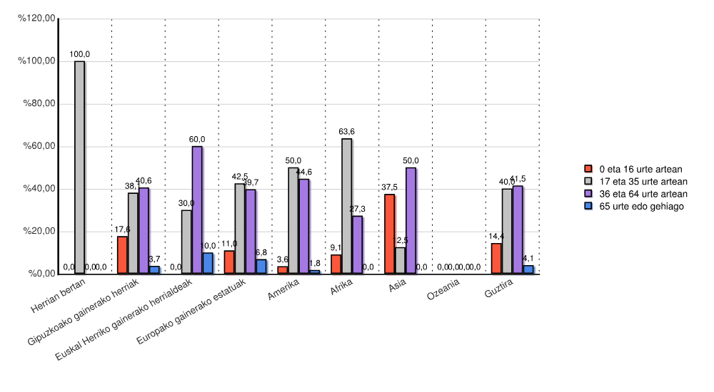 4.2.2.2 Grafikoa: Jatorria Kontinente eta Adinaren arabera