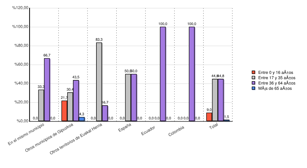 | Otros territorios de Euskal Herria | 0 | 0,0 | 5 | 83,3 | 1 | 16,7 | 0 | 0,0 | 6 | 100,0 |