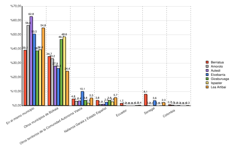 | Estado (INE) | Lea Artibai | Berriatua | Amoroto | Aulesti | Etxebarria | Gizaburuaga | Ispaster | Lekeitio | Markina-Xemein | Mendexa | Munitibar-Arbatzegi-Gerrikaitz | Ondarroa | Ziortza-Bolibar | |||||||||||||
