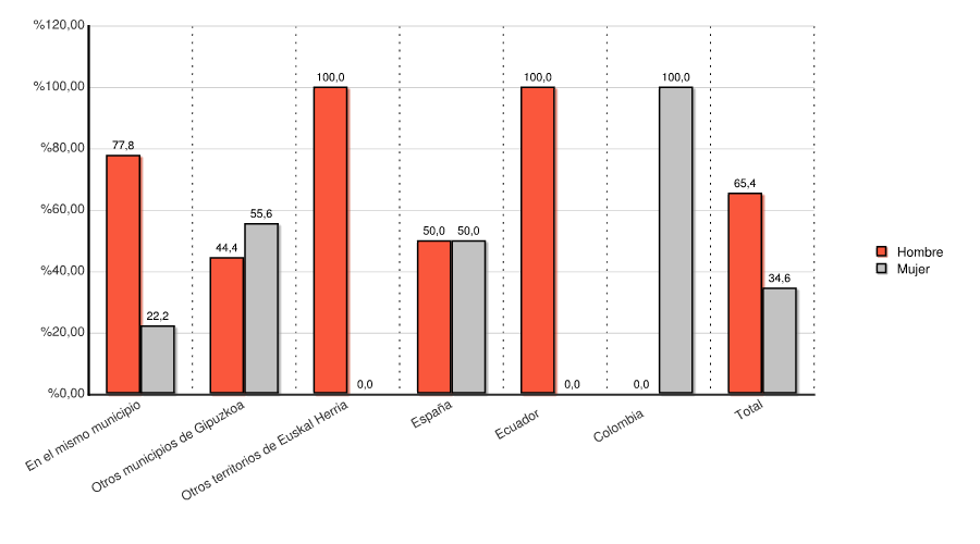 | Otros municipios de Gipuzkoa | 8 | 44,4 | 10 | 55,6 | 18 | 100,0 |