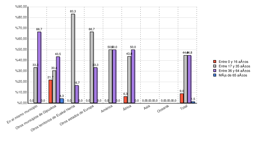 | Otros territorios de Euskal Herria | 0 | 0,0 | 5 | 83,3 | 1 | 16,7 | 0 | 0,0 | 6 | 100,0 |