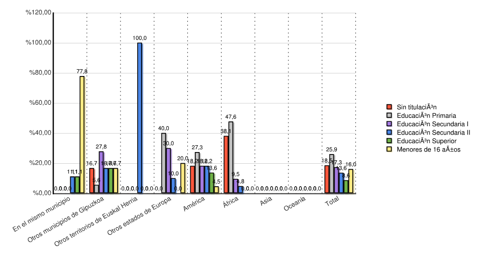 3.2.2.5 Grafikoa: Jatorria Kontinente eta Ikasketa Mailaren arabera