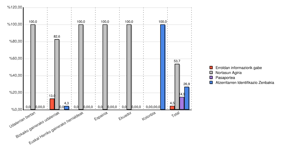 | Estatua | Erroldan informaziorik gabe | Nortasun Agiria | Pasaportea | Atzerritarren Identifikazio Zenbakia | Guztira | |||||