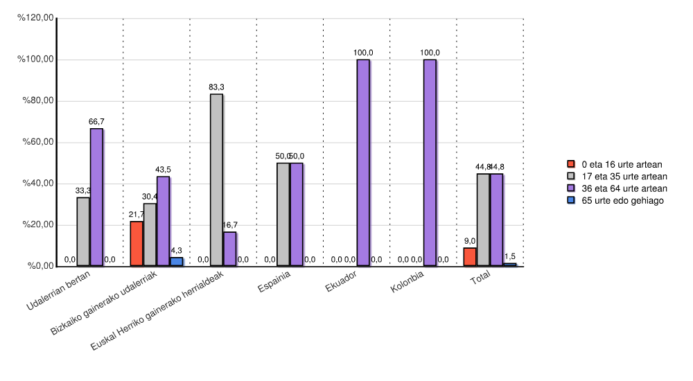 | Udalerrian bertan | 0 | 0,0 | 0 | 0,0 | 0 | 0,0 | 2 | 33,3 | 4 | 66,7 | 0 | 0,0 | 6 | 100,0 |