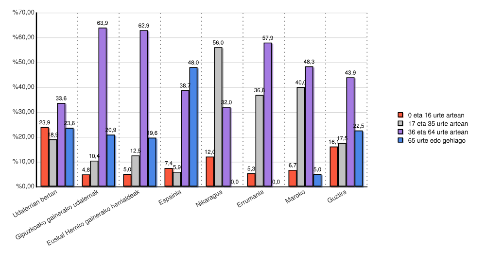 | Udalerrian bertan | 2.967 | 100,0 | 700 | 23,6 | 997 | 33,6 | 562 | 18,9 | 708 | 23,9 |