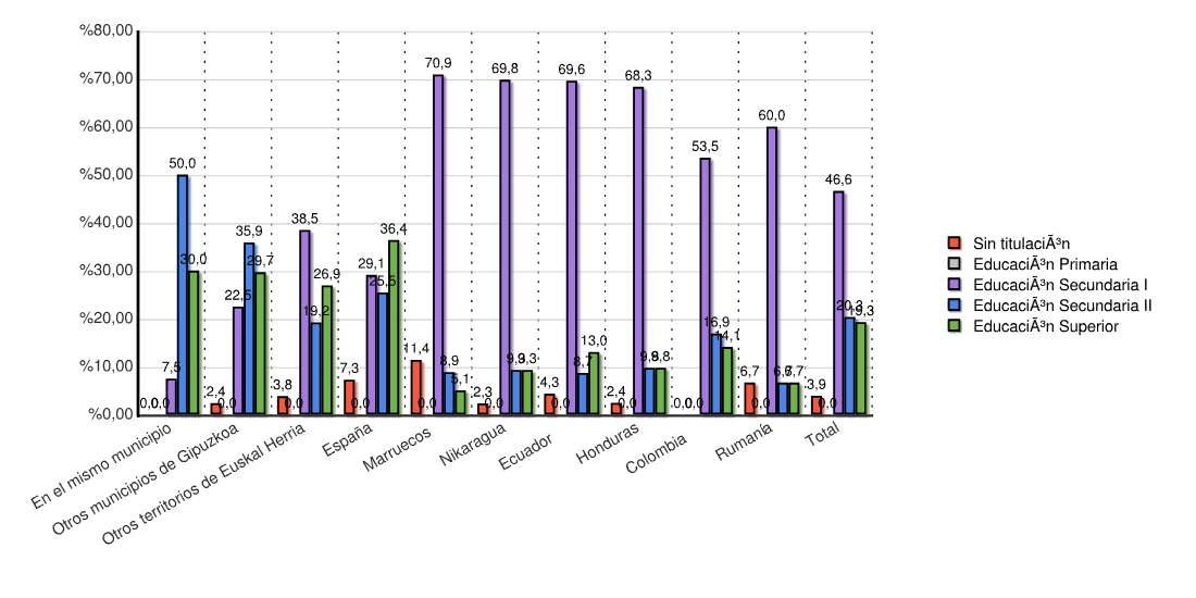 | Estado | Sin titulación | Educación Secundaria I | Educación Primaria | Educación Secundaria II | Educación Superior | Menores de 16 años | Total | |||||||