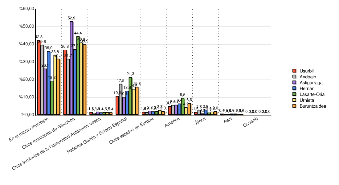 | Otros municipios de Gipuzkoa | 7.565 | 37,2 | 4.604 | 31,7 | 4.098 | 52,9 | 8.535 | 44,4 | 2.553 | 40,9 | 2.369 | 36,8 | 29.724 | 39,9 |