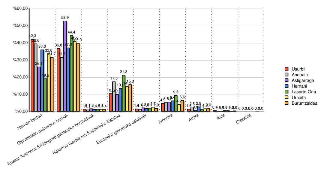 | Herrian bertan | 7.334 | 36,0 | 5.755 | 39,6 | 2.023 | 26,1 | 3.702 | 19,2 | 2.112 | 33,8 | 2.717 | 42,3 | 23.643 | 31,7 |