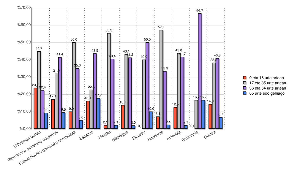 | Euskal Herriko gainerako herrialdeak | 1 | 5,0 | 18 | 90,0 | 0 | 0,0 | 1 | 5,0 | 20 | 100,0 |