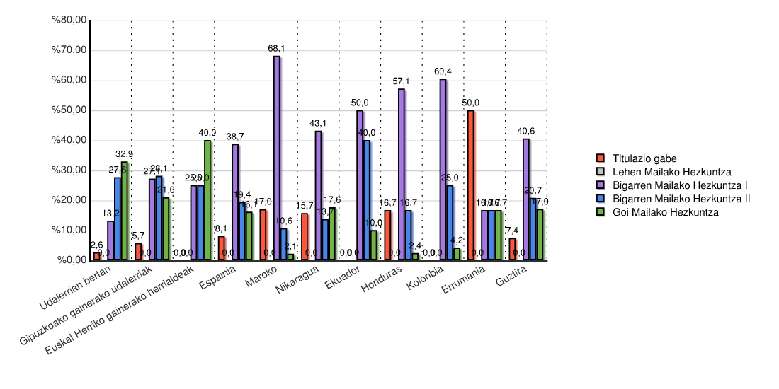 | Estatua | Titulazio gabe | Bigarren Mailako Hezkuntza I | Lehen Mailako Hezkuntza | Bigarren Mailako Hezkuntza II | Goi Mailako Hezkuntza | 16 urtez azpikoak | Guztira | |||||||