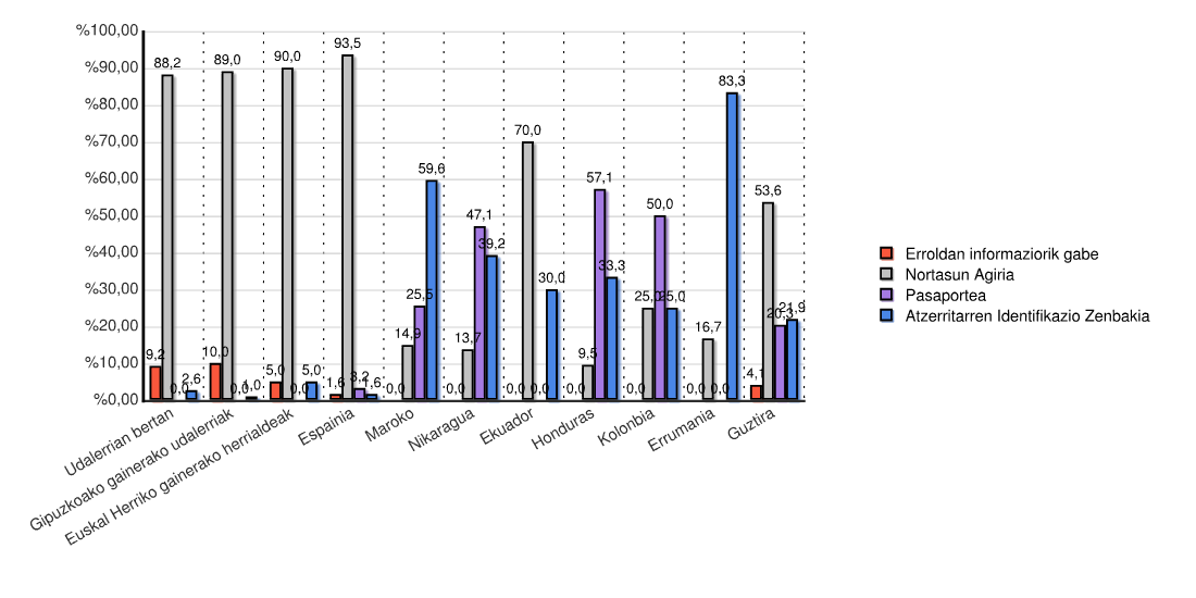 | Estatua | Erroldan informaziorik gabe | Nortasun Agiria | Pasaportea | Atzerritarren Identifikazio Zenbakia | Guztira | |||||
