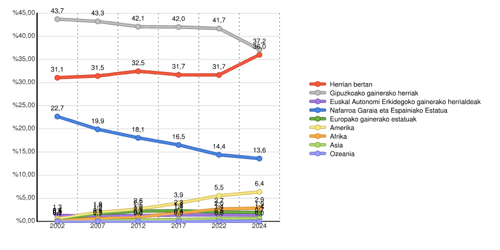 | Herrian bertan | 5.798 | 31,1 | 6.013 | 31,5 | 6.263 | 32,5 | 6.342 | 31,7 | 6.452 | 31,7 | 7.334 | 36,0 |