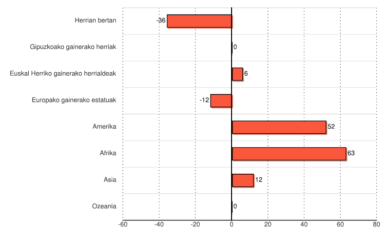 Migrazio saldoa 2024 / Saldoa kontinenteen arabera