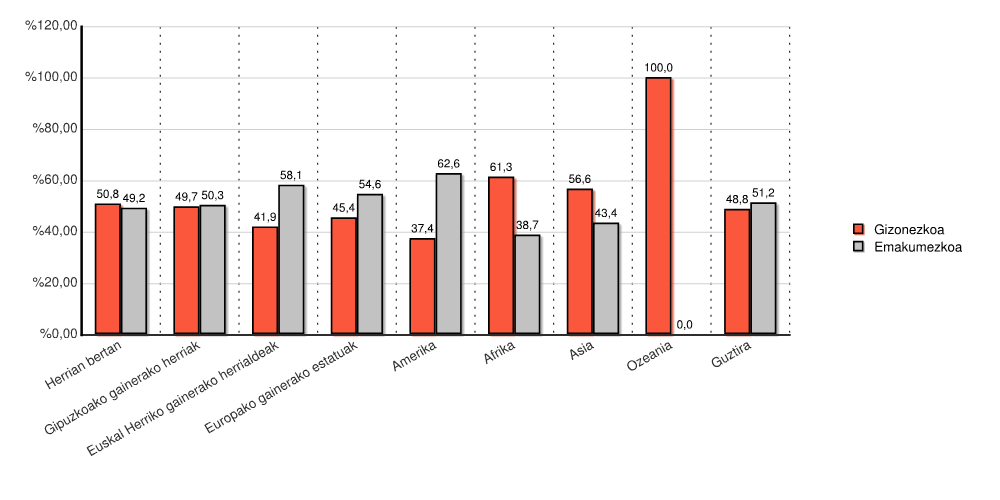 1.2.2.1 Grafikoa: Jatorria Kontinente eta Sexuaren arabera