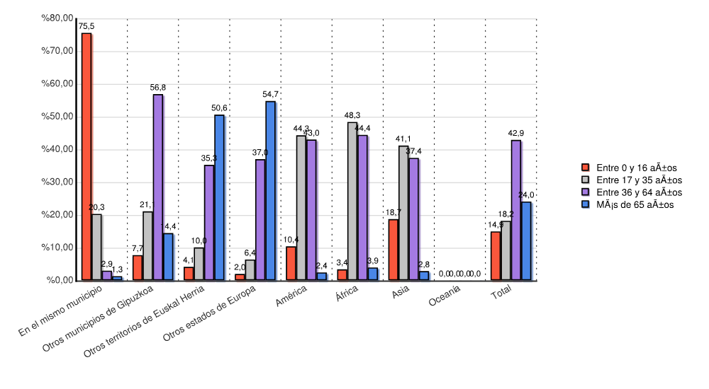 | Otros municipios de Gipuzkoa | 0 | 0,0 | 0 | 0,0 | 0 | 0,0 | 0 | 0,0 | 5.070 | 55,6 | 1.408 | 15,4 | 1.465 | 16,1 | 1.182 | 13,0 | 9.126 | 100,0 |