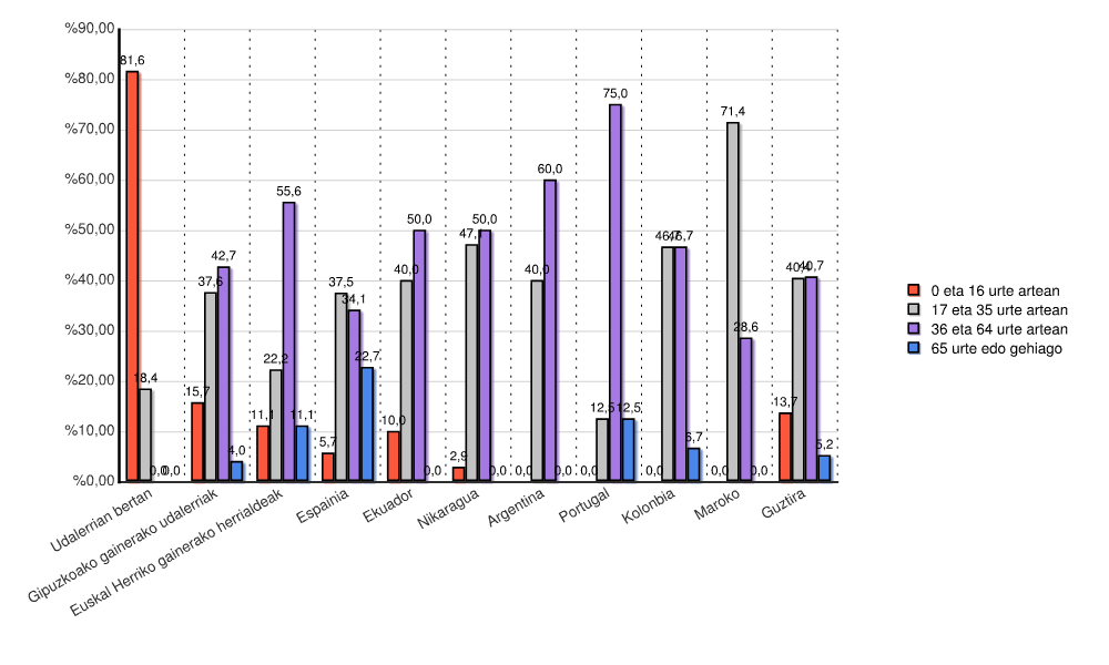| Udalerrian bertan | 31 | 81,6 | 7 | 18,4 | 0 | 0,0 | 0 | 0,0 | 38 | 100,0 |