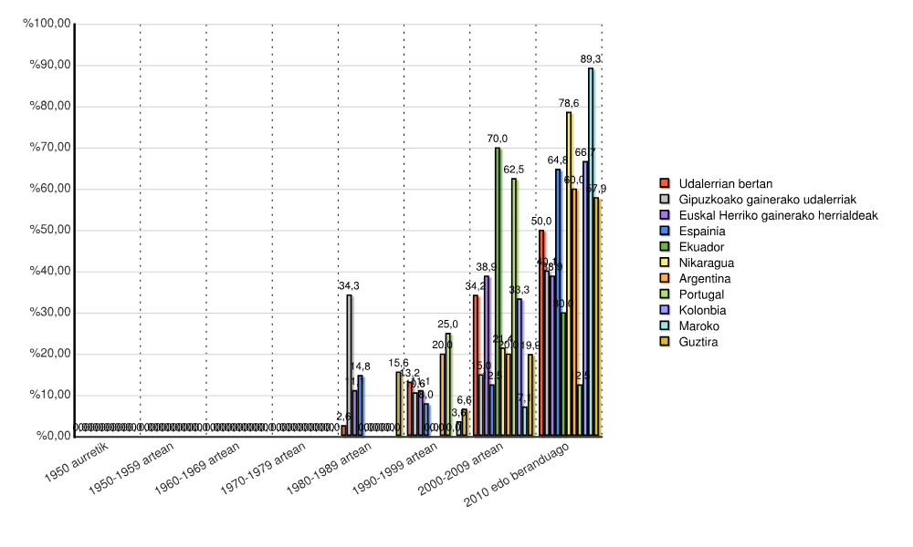 | Udalerrian bertan | 0 | 0,0 | 0 | 0,0 | 0 | 0,0 | 0 | 0,0 | 1 | 2,6 | 5 | 13,2 | 13 | 34,2 | 19 | 50,0 | 38 | 100,0 |