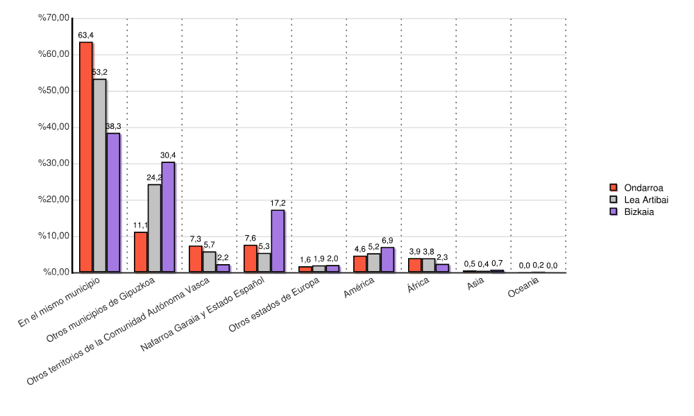 | En el mismo municipio | 5.205 | 63,4 | 13.648 | 53,2 | 442.149 | 38,3 |