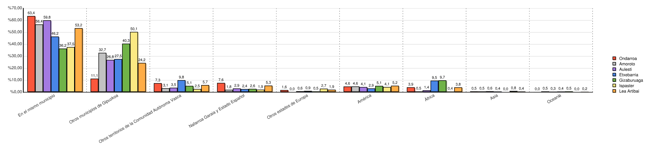 | En el mismo municipio | 5.205 | 63,4 | 221 | 56,4 | 391 | 59,8 | 362 | 46,2 | 71 | 36,2 | 275 | 37,5 | 3.788 | 53,0 | 2.548 | 50,7 | 120 | 28,3 | 152 | 32,3 | 455 | 37,4 | 60 | 15,0 | 13.648 | 53,2 |