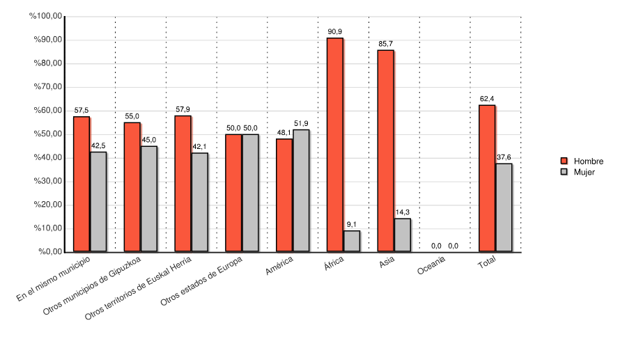 | Otros municipios de Gipuzkoa | 1 | 5,0 | 19 | 95,0 | 0 | 0,0 | 0 | 0,0 | 20 | 100,0 |