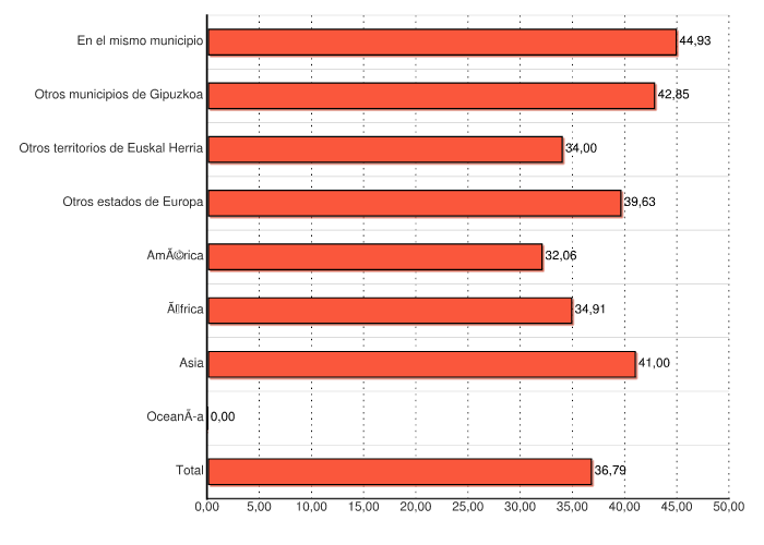 | Otros territorios de Euskal Herria | 0 | 0,0 | 0 | 0,0 | 2 | 10,5 | 10 | 52,6 | 2 | 10,5 | 5 | 26,3 | 19 | 100,0 |