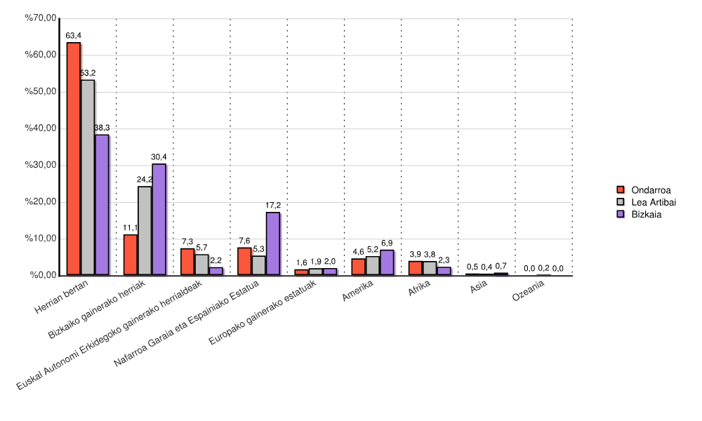 Jatorri aniztasuna 2024 / Jaiolekua ingurunearekin alderatuta / Kontinenteen arabera (2023) / Herria eta bere ingurunea