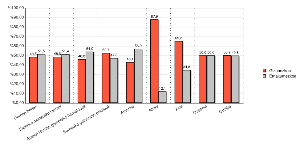 1.2.2.1 Grafikoa: Jatorria Kontinente eta Sexuaren arabera