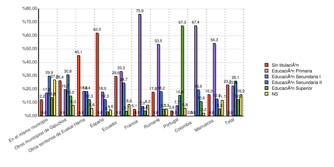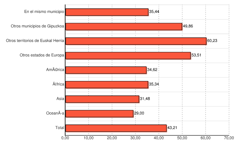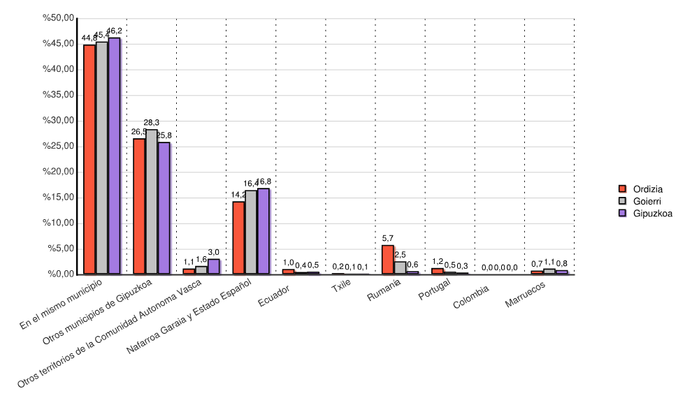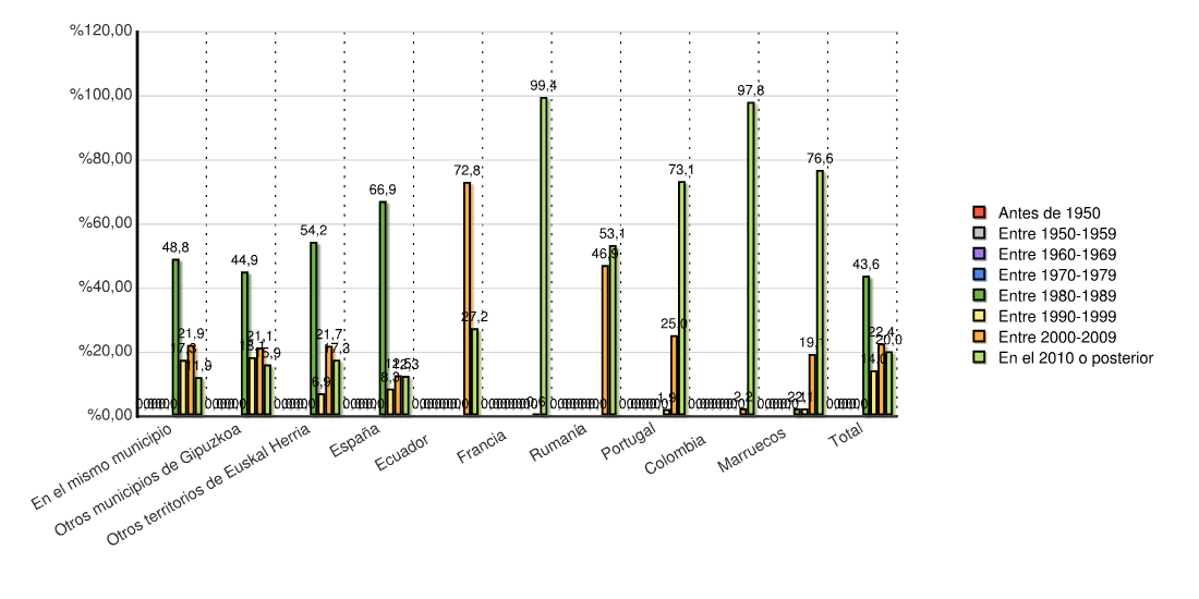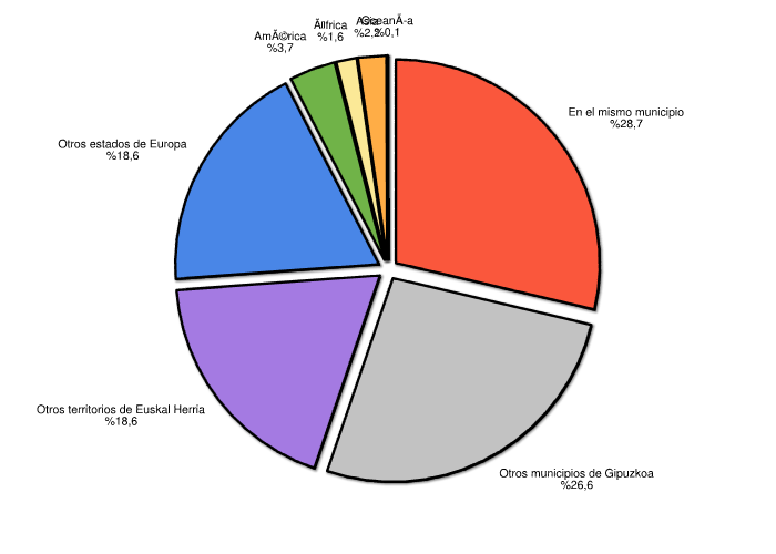 | Eskualdea | En el mismo municipio | Otros municipios de Gipuzkoa | Otros territorios de la Comunidad Autonoma Vasca | Nafarroa Garaia y Estado Español | Rumanía | Portugal | Marruecos | Ecuador | Txile | Colombia | Total | |||||||||||