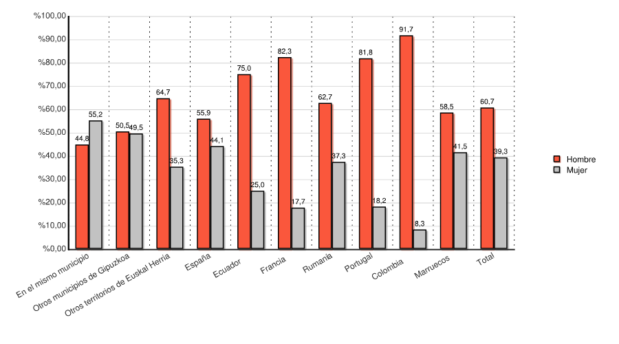 | Otros territorios de Euskal Herria | 11 | 64,7 | 6 | 35,3 | 17 | 100,0 |
