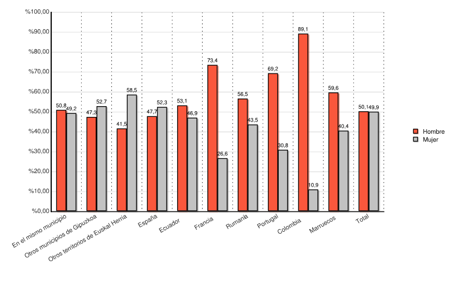 | Otros municipios de Gipuzkoa | 1.238 | 47,3 | 1.377 | 52,7 | 2.615 | 100,0 |