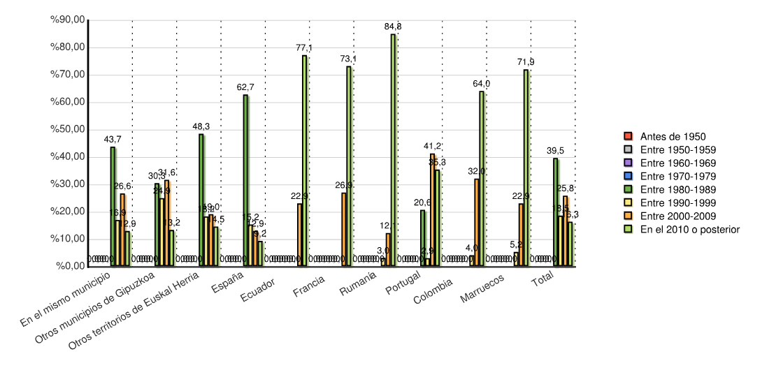 | Otros municipios de Gipuzkoa | 0 | 0,0 | 0 | 0,0 | 0 | 0,0 | 0 | 0,0 | 701 | 30,3 | 575 | 24,9 | 730 | 31,6 | 306 | 13,2 | 2.312 | 100,0 |