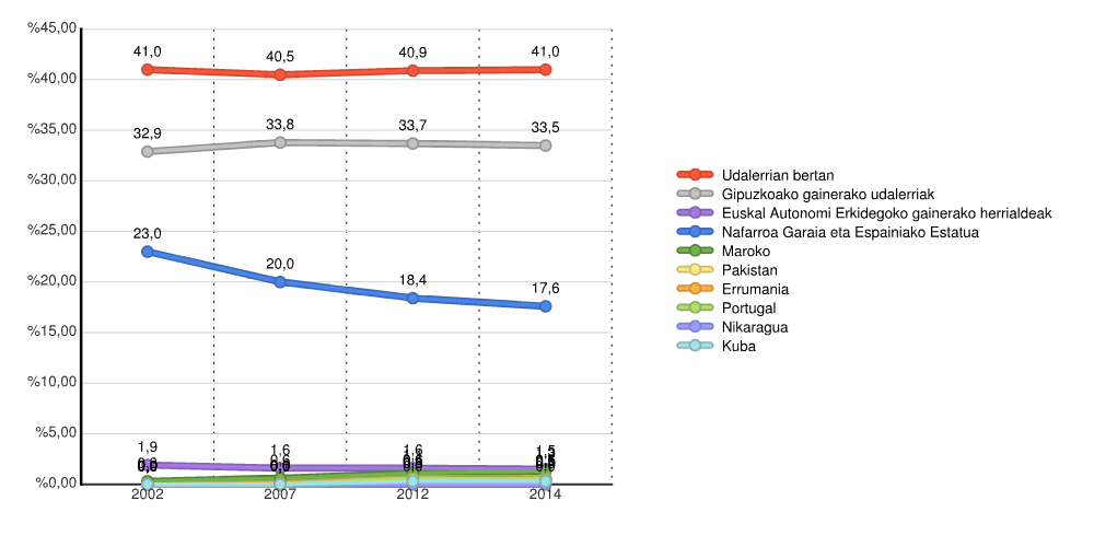 | Udalerrian bertan | 2.707 | 41,0 | 2.740 | 40,5 | 2.830 | 40,9 | 2.825 | 41,0 |