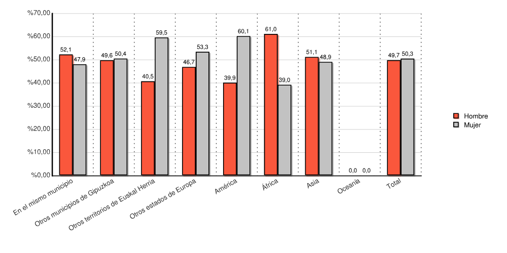 | Otros municipios de Gipuzkoa | 1.264 | 49,6 | 1.282 | 50,4 | 2.546 | 100,0 |