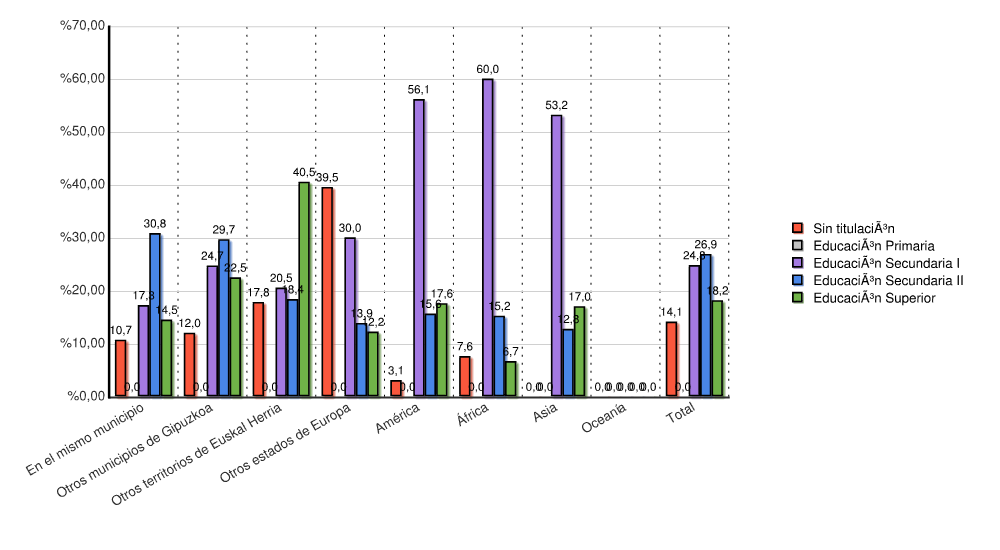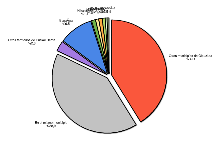 | Otros municipios de Gipuzkoa | 2.369 | 36,8 | 4.604 | 31,7 | 4.098 | 52,9 | 7.565 | 37,2 | 8.535 | 44,4 | 2.553 | 40,9 | 29.724 | 39,9 |
