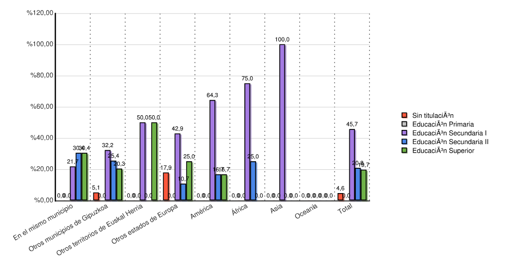 | Continente | Sin titulación | Educación Primaria | Educación Secundaria I | Educación Secundaria II | Educación Superior | Menores de 16 años | Total | |||||||