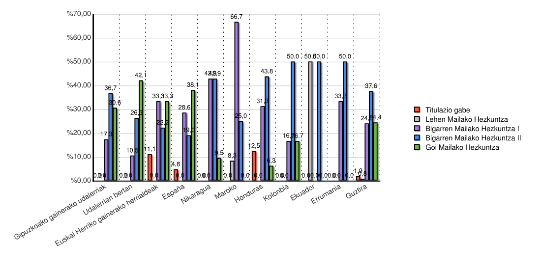 | Estatua | Titulazio gabe | Lehen Mailako Hezkuntza | Bigarren Mailako Hezkuntza I | Bigarren Mailako Hezkuntza II | Goi Mailako Hezkuntza | 16 urtez azpikoak | Guztira | |||||||