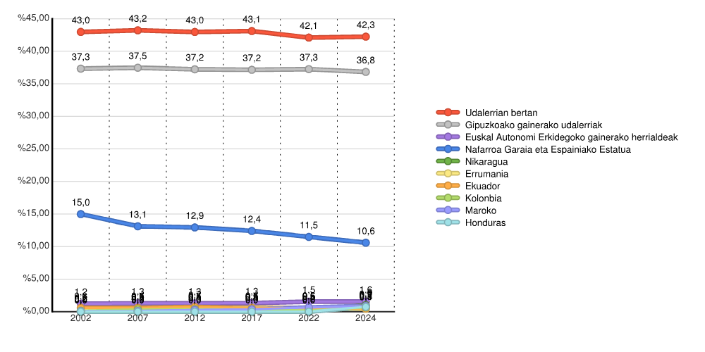 | Udalerrian bertan | 2.458 | 43,0 | 2.633 | 43,2 | 2.651 | 43,0 | 2.656 | 43,1 | 2.597 | 42,1 | 2.717 | 42,3 |