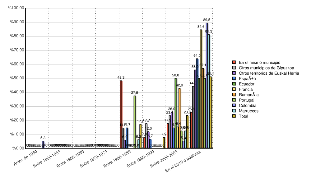 Oharra: Kasu batzuetan, 1980.urtetik aurrera hasi ziren erroldatze datuak jasotzen. Hortaz, posible da 1980.urtea baino lehenago etorritakoen datuak urte horretan jasota egotea.